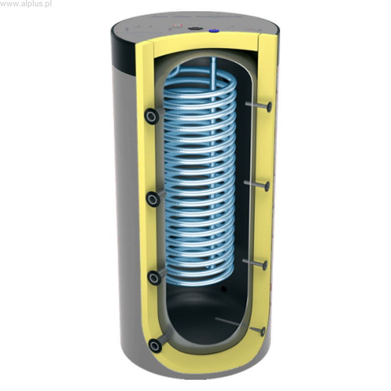 Do tego typu bufora ze względu na wężownicę spiro zmieści się 1 grzałka elektryczna, na gwincie 6/4", wkręcana.