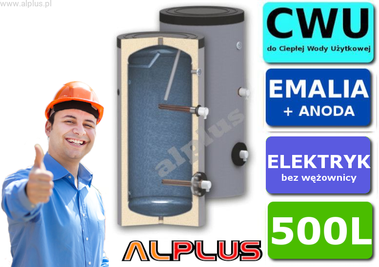 - Bojler (inne określenia: zasobnik, podgrzewacz, wymiennik) emaliowany 500 litrów