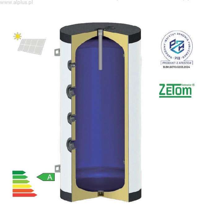 do magazynowania ciepłej wody użytkowej (CWU) i podgrzewania przez opcjonalne grzałki elektryczne
