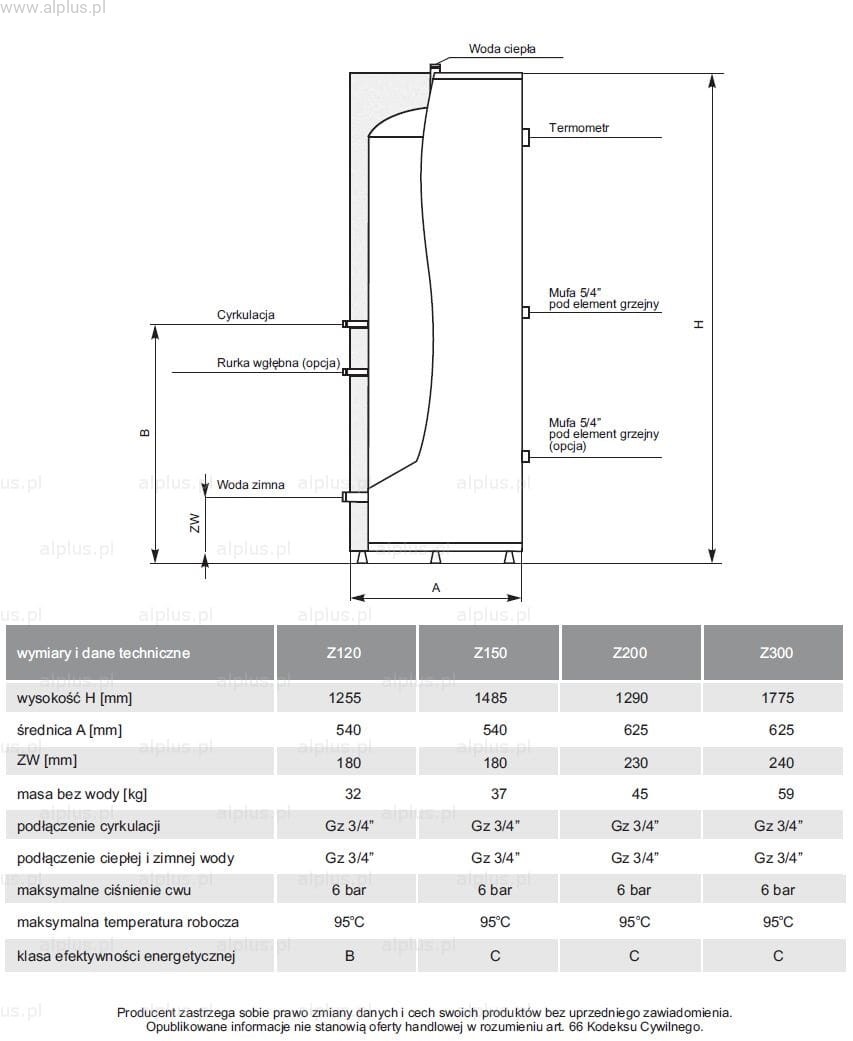 Grzałki objęte są dwuletnią gwarancją producenta. - Nie posiada dwupłaszcza ani wężownicy- służy do ogrzewania wody wyłącznie przy pomocy grzałek elektrycznych.