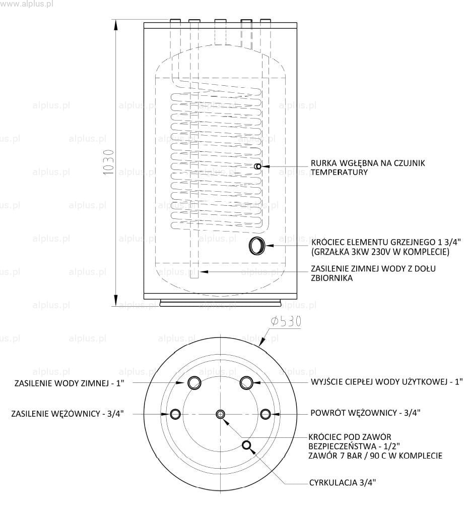 z 1 wężownicą z króćcami od góry