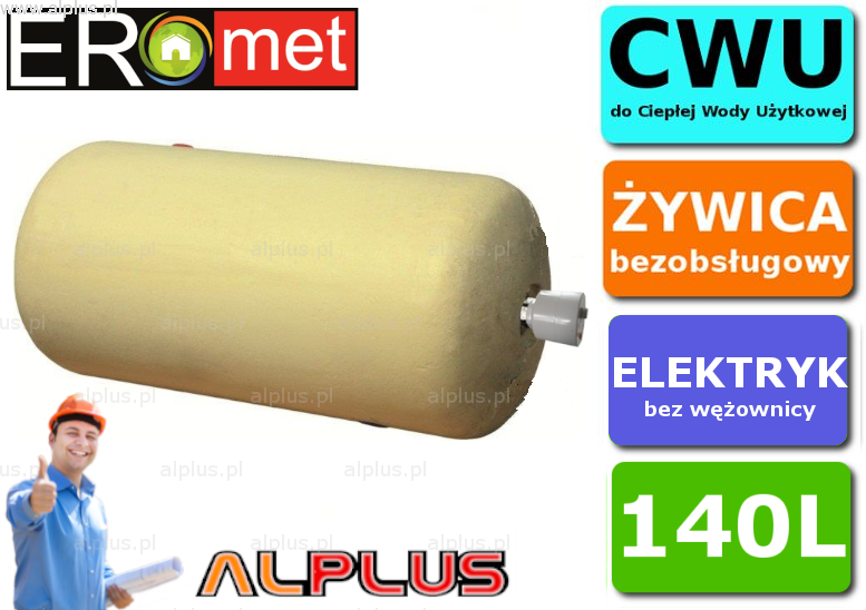 ERMET 140l elektryczny poziomy 2kW bezobsługowy bojler - podgrzewacz do CWU - WYSYŁKA GRATIS