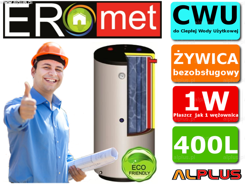 ERMET 400l (572L) pionowy dwupłaszczowy bojler do CWU, bezobsługowy, klasa B, wymiary 142x83cm, wysyłka gratis