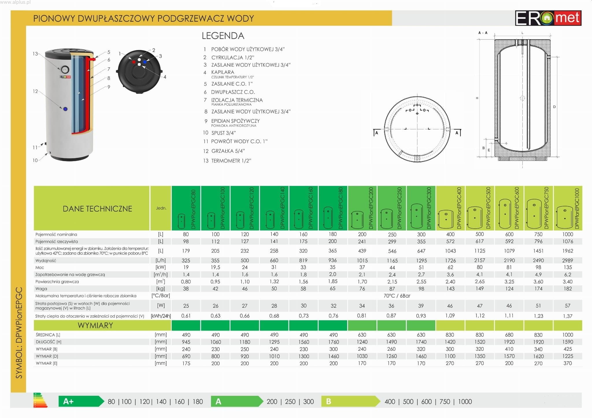 Grzałka 1,5kW jest zalecana do zbiorników o pojemności 80l