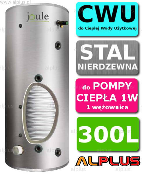 JOULE CYCLONE do pompy ciepła 300L 1W 1-wężownica 3,2m2, nierdzewny wymiennik bojler podgrzewacz CWU, 300 litrów wymiary 160cm x 60cm Wysyłka GRATIS!