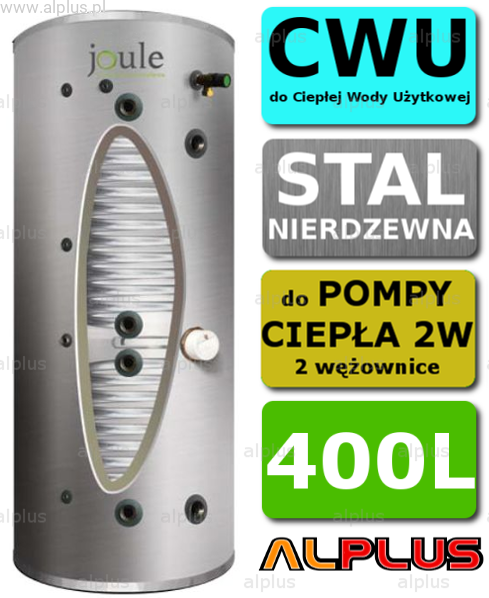JOULE CYCLONE do pompy ciepła 400L 2W 2-wężownice 3,2m2 + 1,1m2, nierdzewny wymiennik bojler podgrzewacz CWU 400 litrów, 157cm x 71cm, Wysyłka GRATIS!