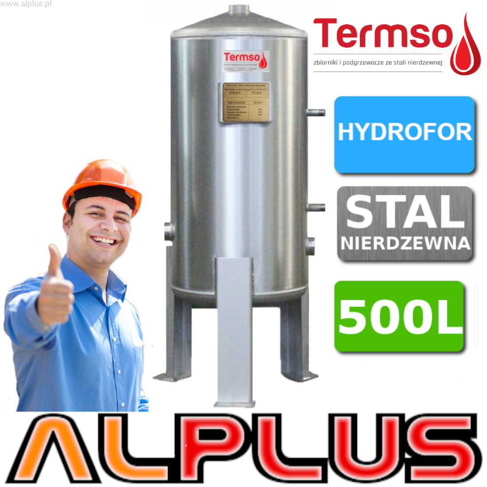 TERMSO hydrofor nierdzewny 500L, wymiary 193cm x 62cm, zbiornik hydroforowy ze stali nierdzewnej kwasoodpornej 316L, 500 litrów, dawniej Chełchowski, wysyłka gratis