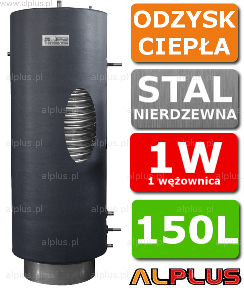 Zbiornik, wymiennik do odzysku ciepła z procesów chłodzenia, do freonu, stojący pionowy 150 litrów z 1 wężownicą, Chełchowski, nierdzewny, opcja: wiszący, zawór w cenie, Wysyłka gratis
