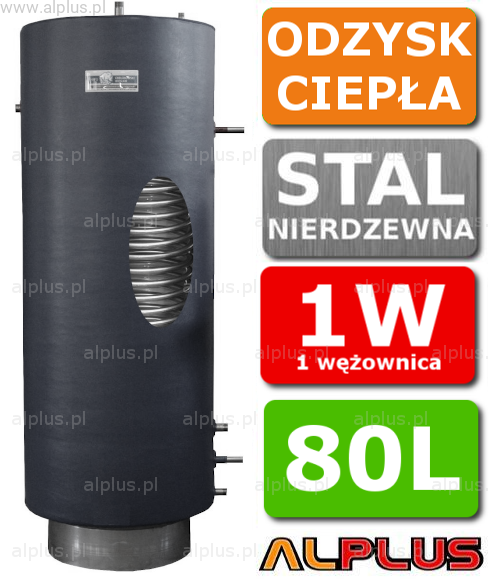 Zbiornik, wymiennik do odzysku ciepła z procesów chłodzenia, do freonu, stojący pionowy 80 litrów z 1 wężownicą, Chełchowski, nierdzewny, opcja: wiszący, zawór w cenie, Wysyłka gratis