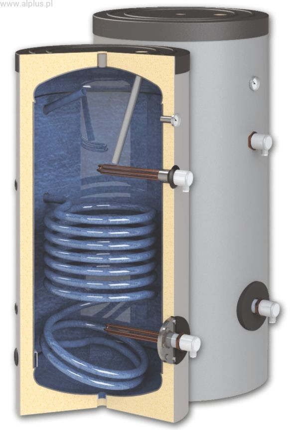 - Zastosowanie: do podgrzewania ciepłej wody użytkowej (CWU) poprzez wężownicę (która spełnia funkcję wymiennika ciepła) i opcjonalne grzałki elektryczne