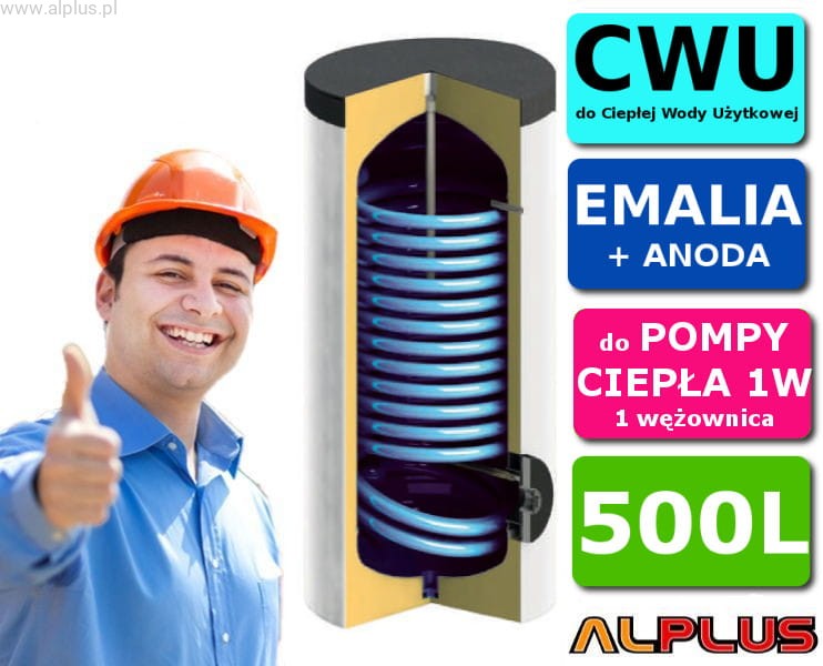 Zbiornik emaliowany 500L PC z 1 wężownicą 4,4m2 do pompy ciepła HP, wymiary 168cm x 76cm, rzeczywista pojemność 426 litrów, KHT ВТM-500-WP-PU, klasa C, wysyłka gratis
