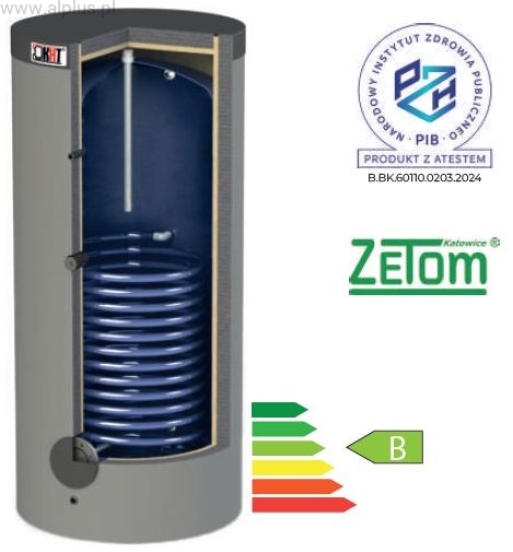 - Zastosowanie: do podgrzewania ciepłej wody użytkowej (CWU) poprzez wężownicę (która spełnia funkcję wymiennika ciepła) i opcjonalne grzałki elektryczne